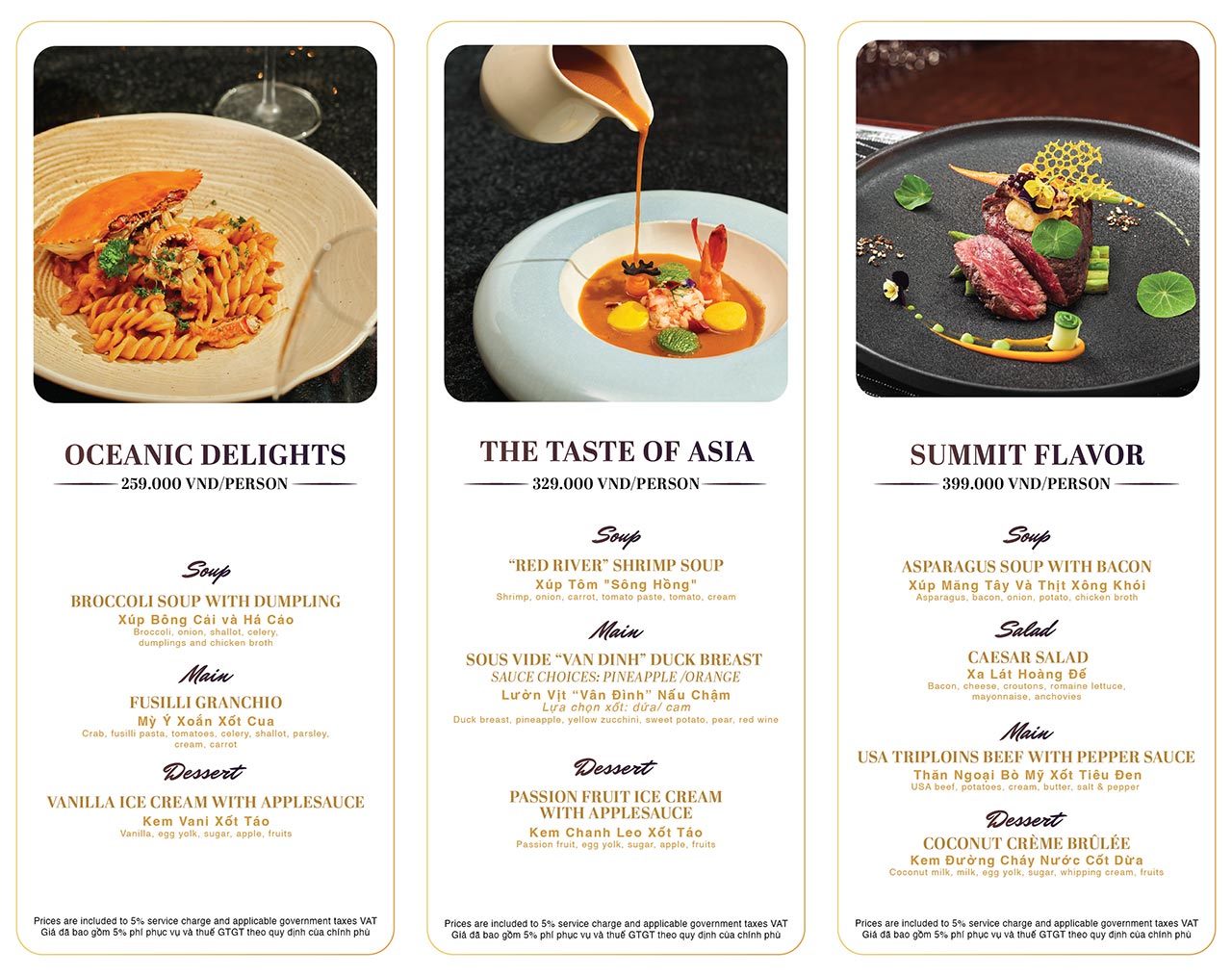 🍲Fresh and delicious flavors with 3 diverse set menu options, elegantly presented in its own dish: “Red River” Shrimp Soup, Twisted Spaghetti with Crab Sauce, USA Beef Tenderloin with Black Pepper Sauce, Coconut Creme Brulee,…
